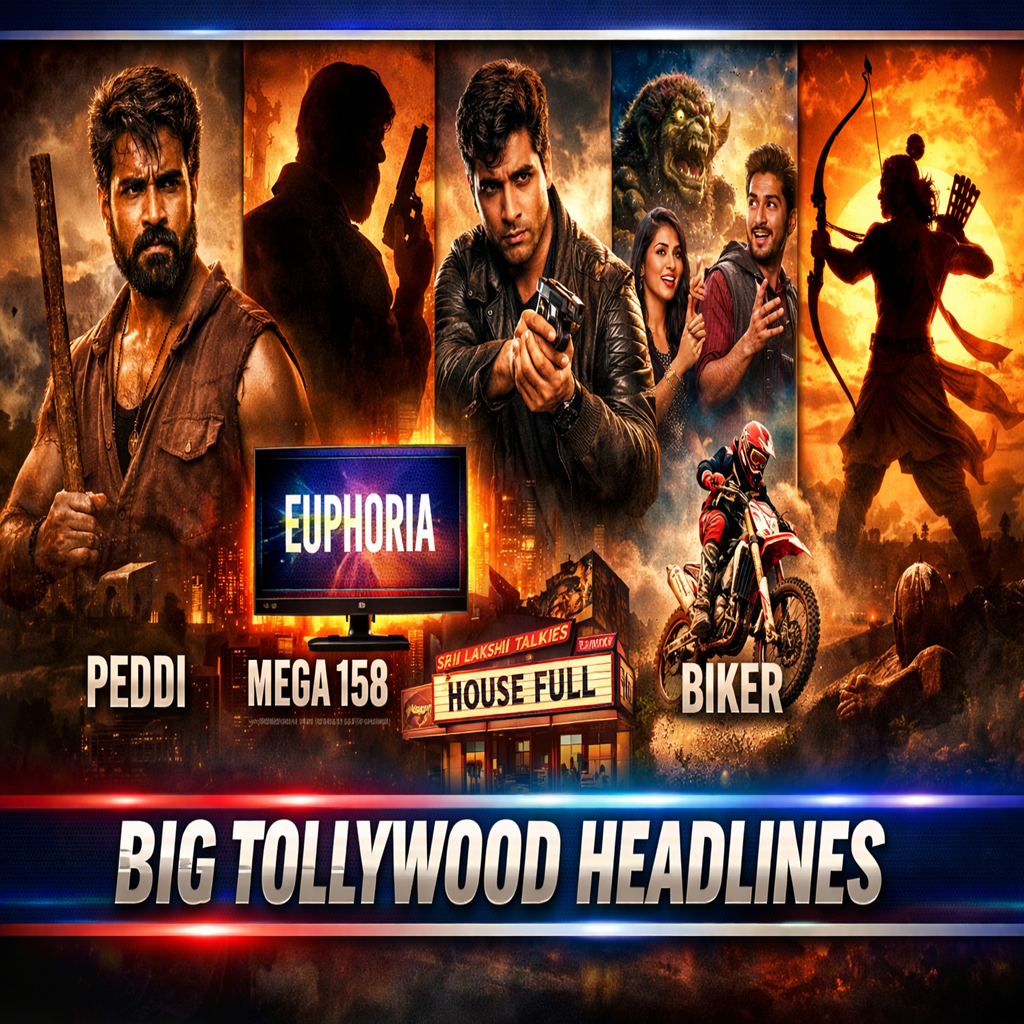 This latest Tollywood news cycle shows a strong mix of theatrical buzz, digital releases, star-driven announcements, and industry-level changes. Big stars like Ram Charan, Chiranjeevi, Balakrishna, Adivi Sesh, and Ranbir Kapoor remained in focus, while projects like Peddi, Mega 158, Decoyt, Rakasa, and Ramayana kept audience attention active.